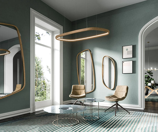The apparent formal simplicity becomes the standout element of every home. These light fixtures can take the form of a perfect circle or a sinuous line that folds in on itself.