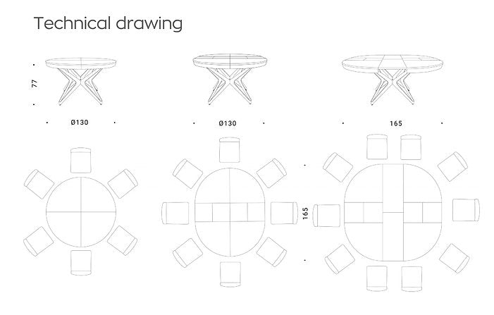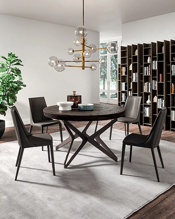 The Big Round extending table represents the evolution and innovation of the round table mechanism. The patented opening mechanism is made up of a perfect overlapping of solidly held joints.